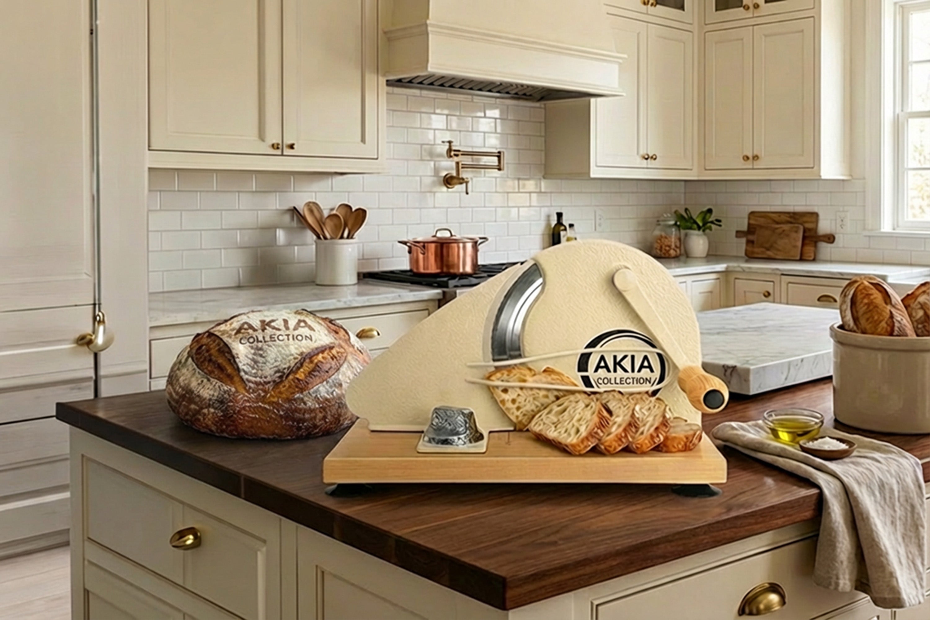 Akia Collection exists for one reason: to make the homemade bread experience better, start to finish. Not with complicated gadgets or disposable plastic. With simple, beautiful tools built to last – a manual bread slicer that gives you bakery perfect cuts at home, and a reusable beeswax bread bags that keep your loaves fresh for days, naturally.